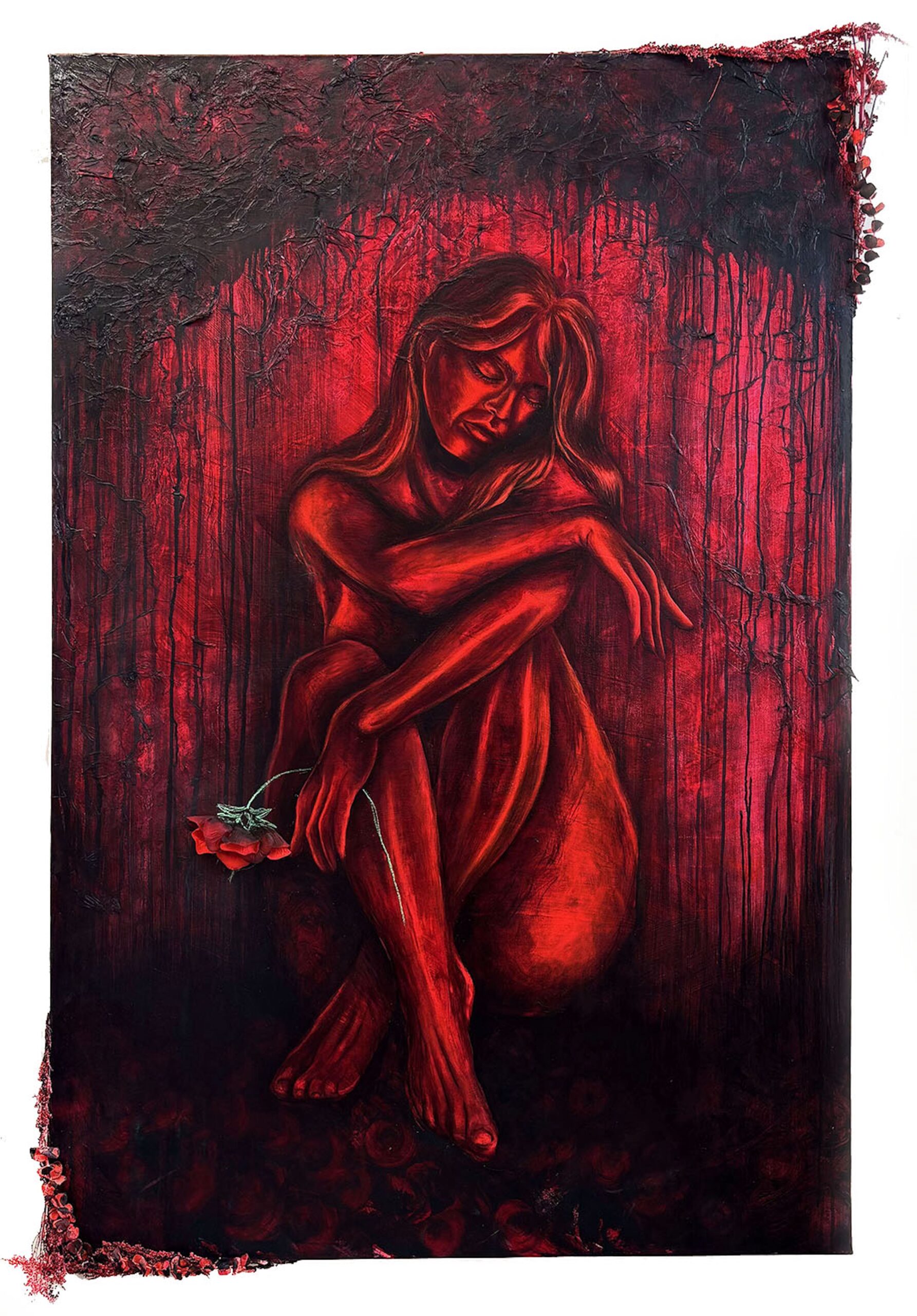 Oil, acrylic, collage and dried flowers on canvas150cm x 100cm2025